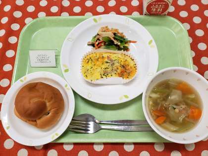 「フレンチエッグ」は、マッシュポテトにキッシュのような卵液とチーズをかけてオーブンで焼いたものです。バターや生クリームのコクがありながらもふわふわ感のあるオムレツです。