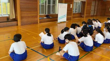 長距離走とラジオ体操の2本立ての授業を体育館で行いました。