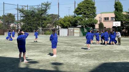 2年生の数学では、校庭のトラックにセパレートコースをつくる(考える)授業でした。