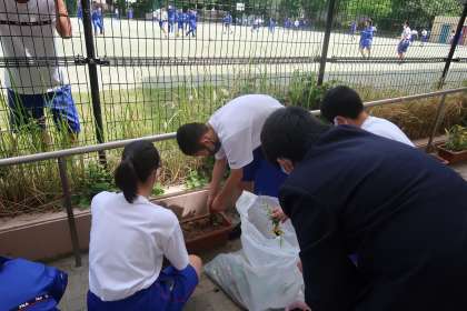 毎週月曜日の昼休みに行っている、花ボランティアの活動にI組の生徒も参加しました。
