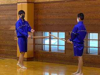 部員の皆さんは昇段試験に向けて型の確認を行いました。2.3年生お疲れ様でした!
