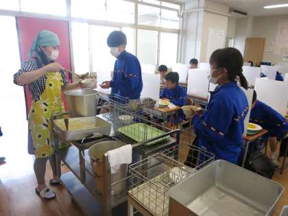 昨日の給食のとき、隣のクラスから「まだカレー食べたい人〜」と有井先生が3Bのカレーを持ってきました。先日も食べたりない生徒が多く、他クラスからもらってくることがありました。(もちろん、他クラスのおかわりが終わってからです)