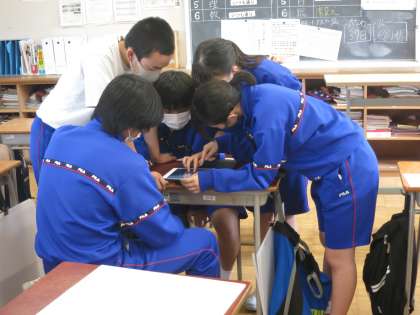 昼休みでは、2時間目にやった全員リレーを見返して、分析していました。そして6時間目にその反省や提案を生徒中心にクラス全体で行ていました。