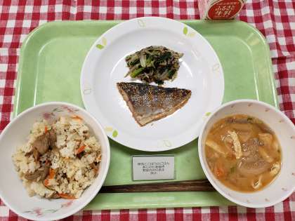 今日の汁物「呉汁(ごじる)」は、みそ汁に大豆をすりつぶしたものを加えています。