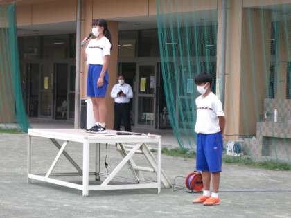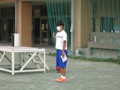 司会は、行者さん。緊張もあったと思いますが、全校生徒の前でしっかりと会を進行することができました。