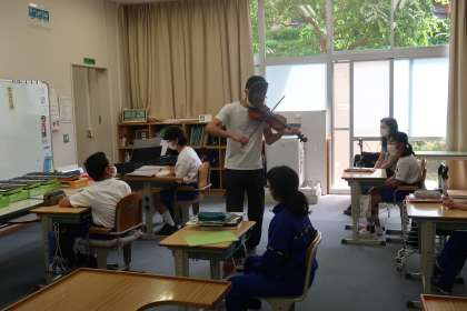 歌をみんなで歌ったあとに、バイオリンの音色を聴きました。
