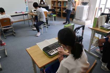 バイオリンでは久しぶりに特別ゲストが登場し、ヴィヴァルディの「春」を演奏しました。最後はみんなでキーボードで「友達になるために」を練習しました。