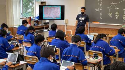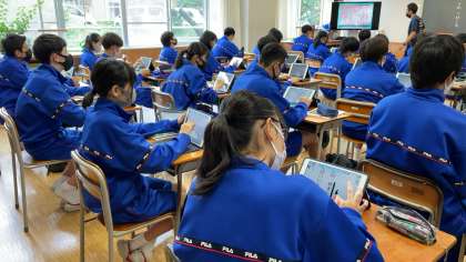 それぞれの生徒が自分が使いやすいようにタブレットPCを活用していました。