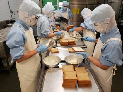 チーズやジャムを、1枚1枚パンの端まで丁寧に塗っています。