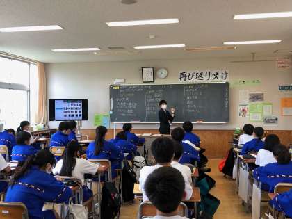 2年A組では、理科の小野塚先生が最後の学活をしました。