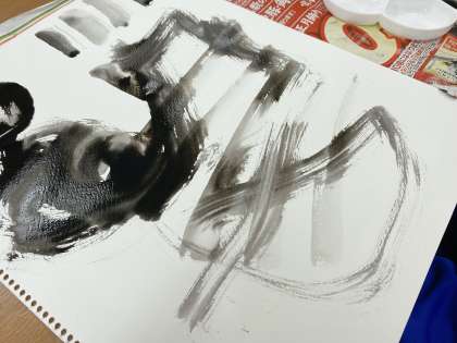 書道とは異なり「きれいに形を描く」というよりも「さまざまな筆の表現」を意識して描きます。