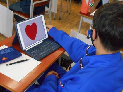 まずは自分の好きな色を使って、好きな形を一つタブレットに書きます。