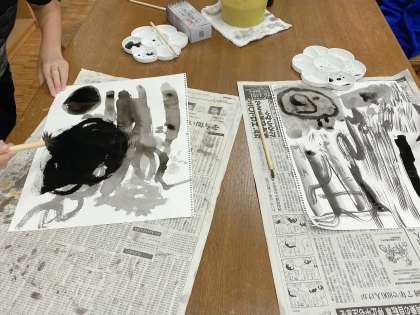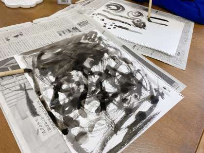 さまざまな筆の使い方で、どんな表現ができるのか。大胆に描きながら取り組んでいました。