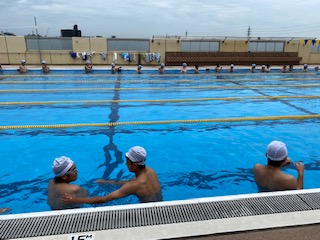 体育の授業で、プールがありました。今日は、日が出ていなかったため、少し寒そうでした。