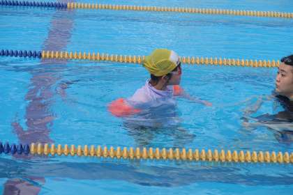 最初はみんな緊張しながら入っていましたが、徐々に水にも慣れ、楽しく入ることができました。