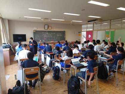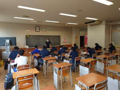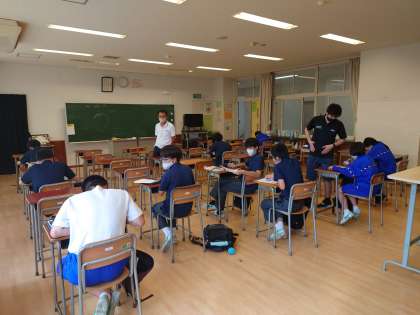 本日7/27(火)午前11時〜11時50分に行われました、夏季休業中補習教室の様子です。1年生は英語科瀬喜先生、2年生は理科長山先生、3年生は英語科樋口先生が教えています。