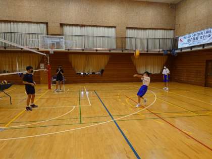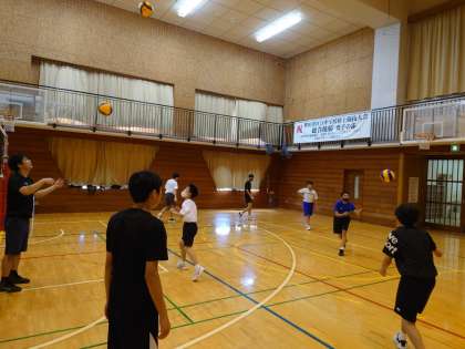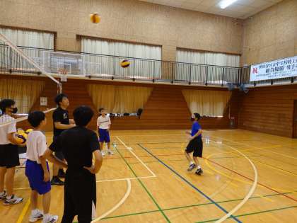 男子バレーボール部の部活動の様子です。暑い中、体育館でトスやレシーブでのディフェンス練習を行っていました。すごいですね。
