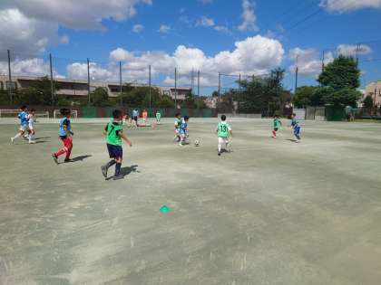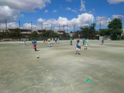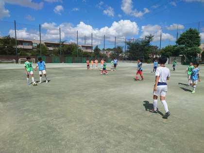 サッカー部の部活動の様子です。暑い中、校庭でフォーメーションの確認の練習を行っていました。すごいですね。