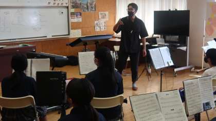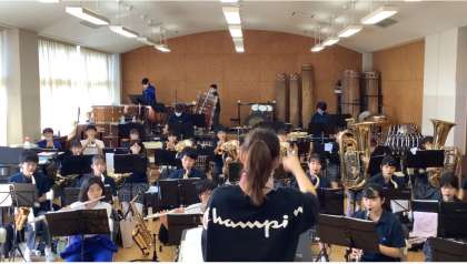 猛暑の中、音楽室からは暑さに負けないぐらいの楽器の音が聞こえてきます。