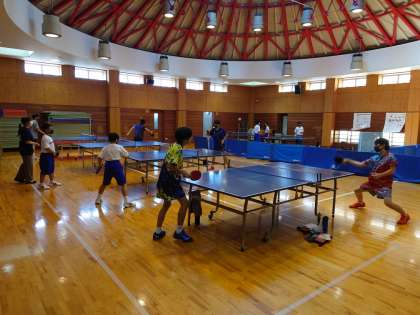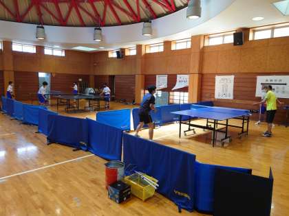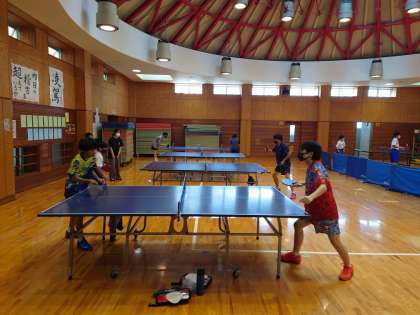 卓球部の部活動の様子です。暑い中、武道場でラリーの練習を行っていました。すごいですね。