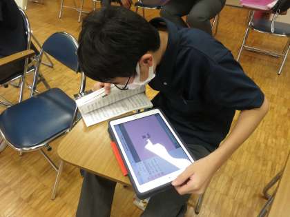 休み時間は教員タブレットの前で、奇数組のみんなに話しかけていました。