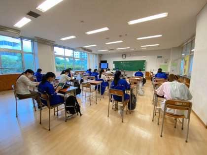 夏休みの課題の「風景画」を鑑賞し合いました。