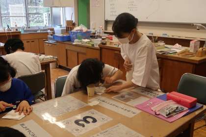 醤油を染み込ませた布にキッチンペーパーを当てて、