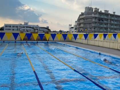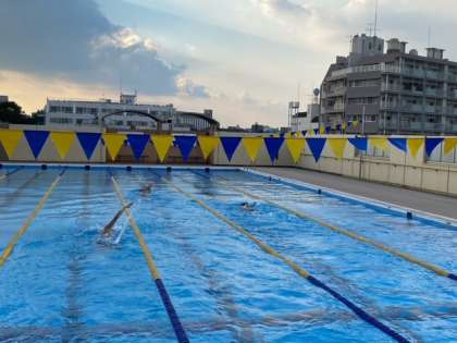 分散登校中も水泳部は活動していましたが、その中でも本日は一番気温が高く、気温32℃、水温25℃です。しかし、9月に入って一気に気温が下がり、久しぶりの偶数組にとって、体感はとても冷たいです。そんな中ですが頑張っています!(松田)