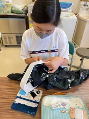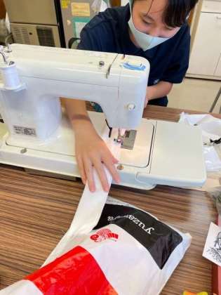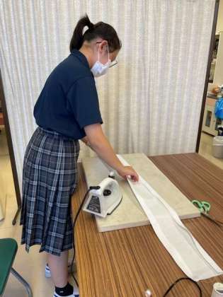 顧問がやる予定でしたが、「ミシンが得意!」という1年生部員3名に担当してもらうことにしました。