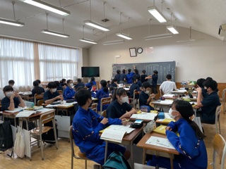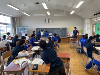 ロイロノートを使うこともありますが、今回は黒板を使って意見を交換しています。