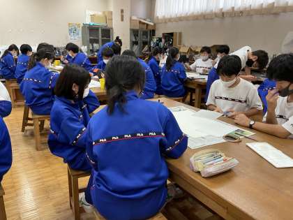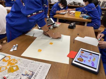 版画の経験はすでに小学校でやっていたそうですが、改めてばれんの使い方や版画についての説明を行なった後、実際に班で分担して版画をやってみました。