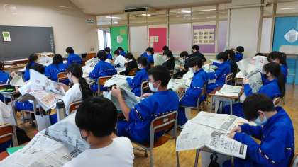 先週の日本語の時間では新聞の役割について学習をしました。今回は新聞に目を通し、一番印象に残った記事を班員に紹介しました。「新聞を読むのは大変、難しい」という声が聞こえてきました。新聞の中から、おもしろい、興味がもてる記事を発見できると良いですね!