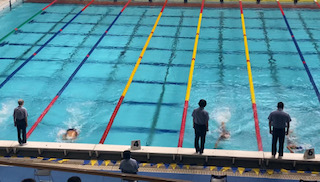 午後の部、50m 自由形には2,3年男子、3年女子が参加します。