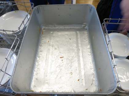 今日の給食はつけ麺でした。おかわりが足りず、食缶のふちについた麺まで綺麗に食べました。