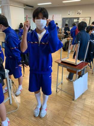 昨日の給食配膳中に、ある生徒の足元を見ると、ソックスをマックスで上まで上げていました。昼休みのサッカーに備えて、準備万端だそうです。
