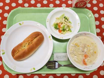 3時間目ころからにんにくとバターの香りが校内を漂い、食欲をそそりました。