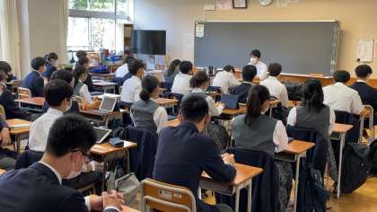 全校朝礼 その3(表彰と生活指導主任のお話)