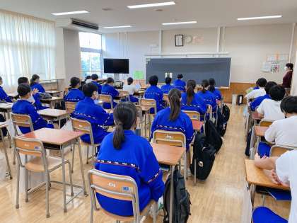 今朝は放送で全校朝礼が行われました。