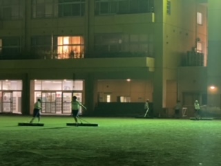 野球部では、いつもこだわりを持って整備を行っています。次に使う部活や体育の授業でグラウンドが気持ちよく使えるように丁寧に整備を行っています。
