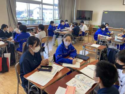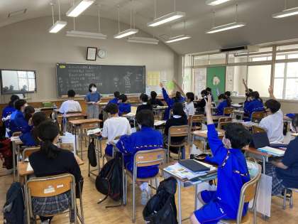 月曜日の学活では、学校をよりよくするため生徒同士で話し合う学級討議を行いました。B組ならではのユニークな質問や要望をたくさん出してくれました。