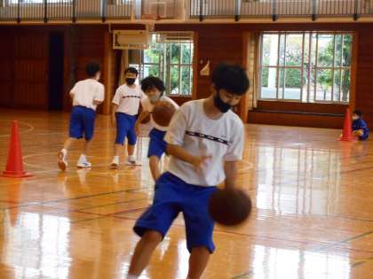 1時間目のAB組は体育で、男子はバスケットボールでした。