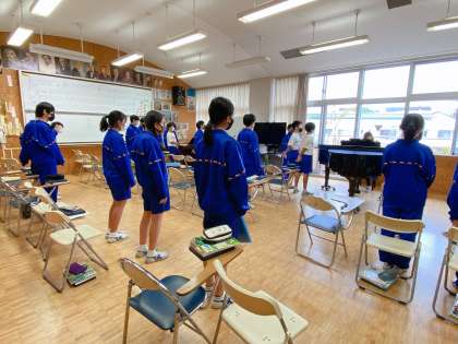 音楽の益子先生が「遠くに響くように歌ってね」と言うとさらに歌声が美しく響きます!