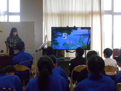 「浜辺の歌」について細かく考察する授業で、メロディーの構成・歌詞の意味をみんなで考えていました。