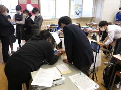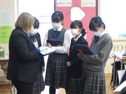 ある日の英語の授業後にALTのステイシー先生と楽しく会話していました。