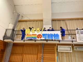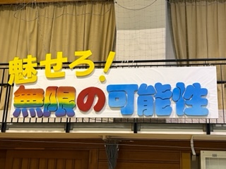 素敵なスローガンボードが出来ました!無限の可能性を感じます。さまざまな工夫を凝らしてカラーを表現しています。落ちないようにしっかり固定してあります!(松田)