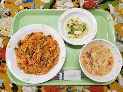 「ジャンバラヤ」は、アメリカ合衆国南部で食べられている、ちょっとスパイシーな米料理です。
