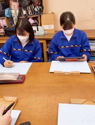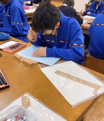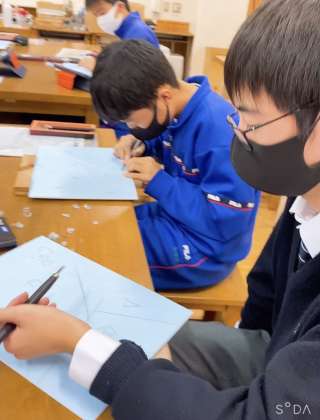 彫刻刀を使っての作業なので安全に落ち着いて授業を受けていました。