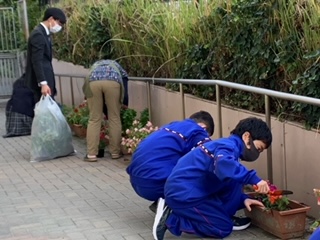 花を植え替える作業は大変ですが、地域の方にアドバイスをもらいながら、時間内に全ての花を植え替えることができました!