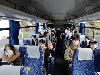 早朝、校外学習へ出発しました。