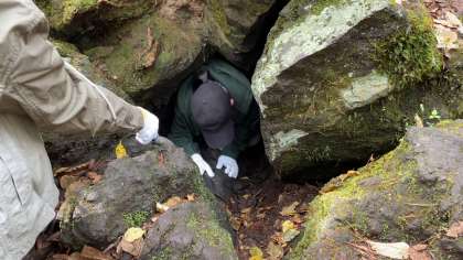 ネイチャーガイドウォークで樹海を散策しています。?